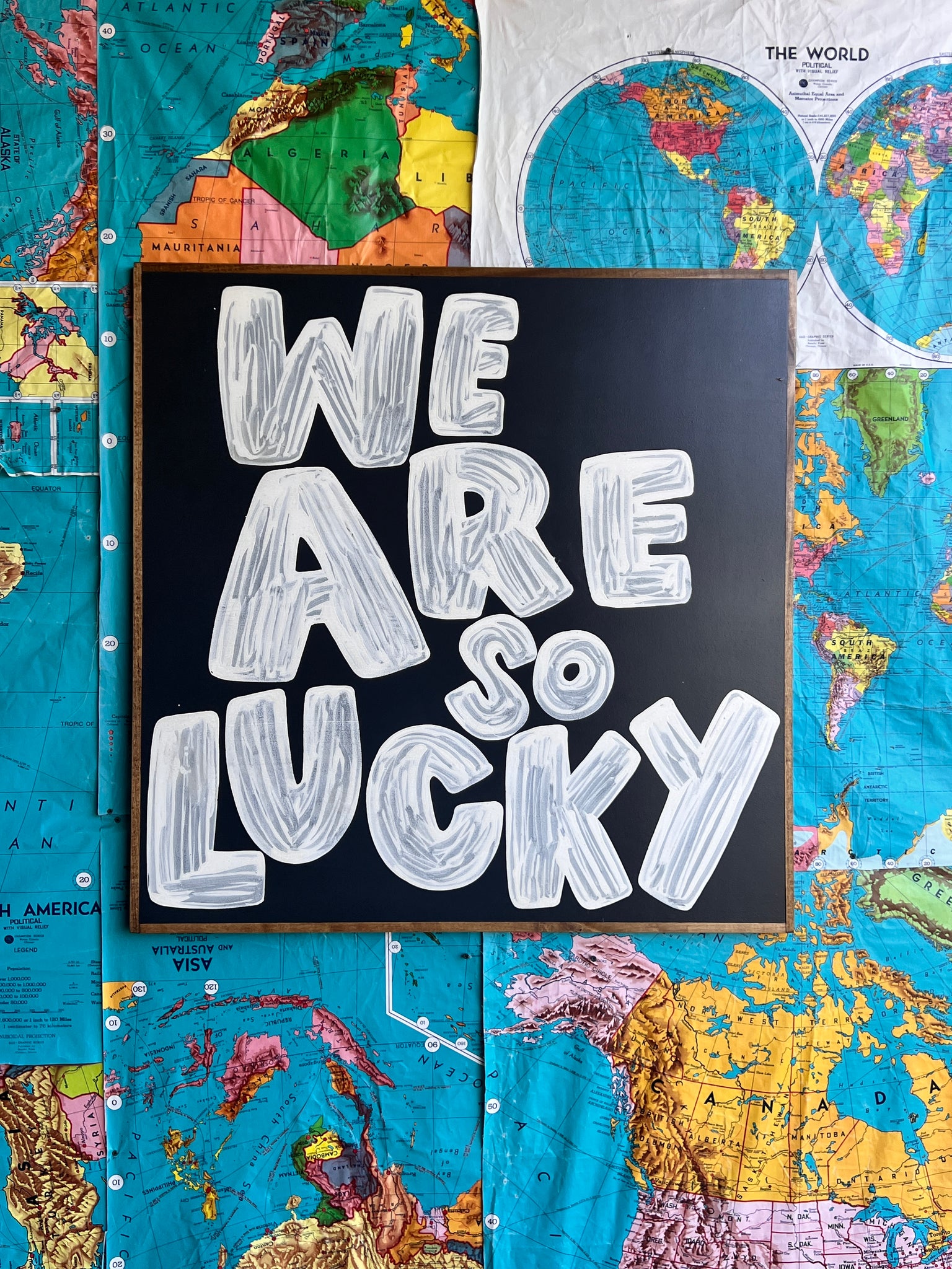 37x37 RESTOCKED “We Are So Lucky” Hand-Painted Sign