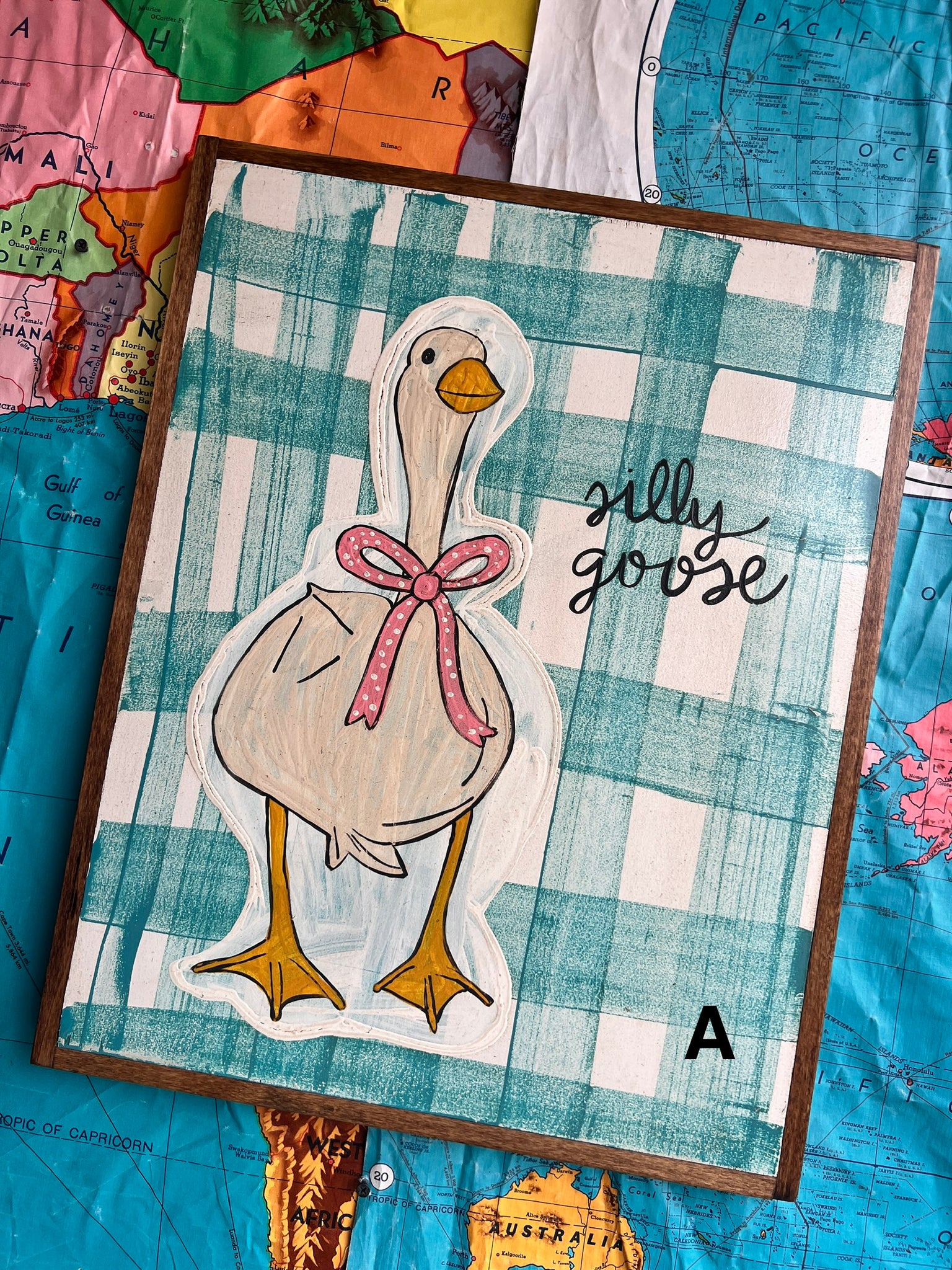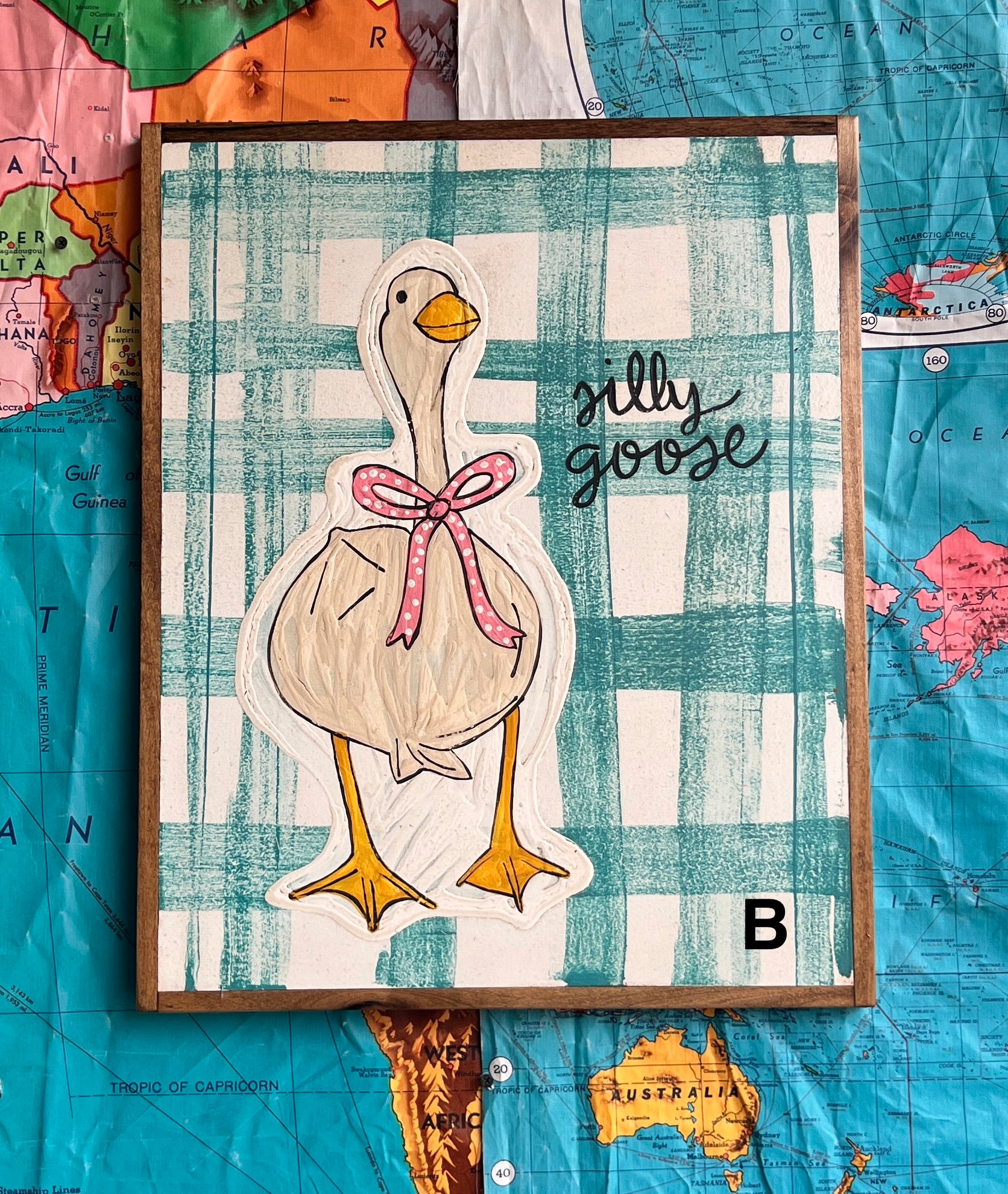 17x21 HAND-PAINTED SIGN on a solid background. Design is painted on a 1/2 maple plywood, sealed with a clear coat and framed painted red Indiana native poplar.
