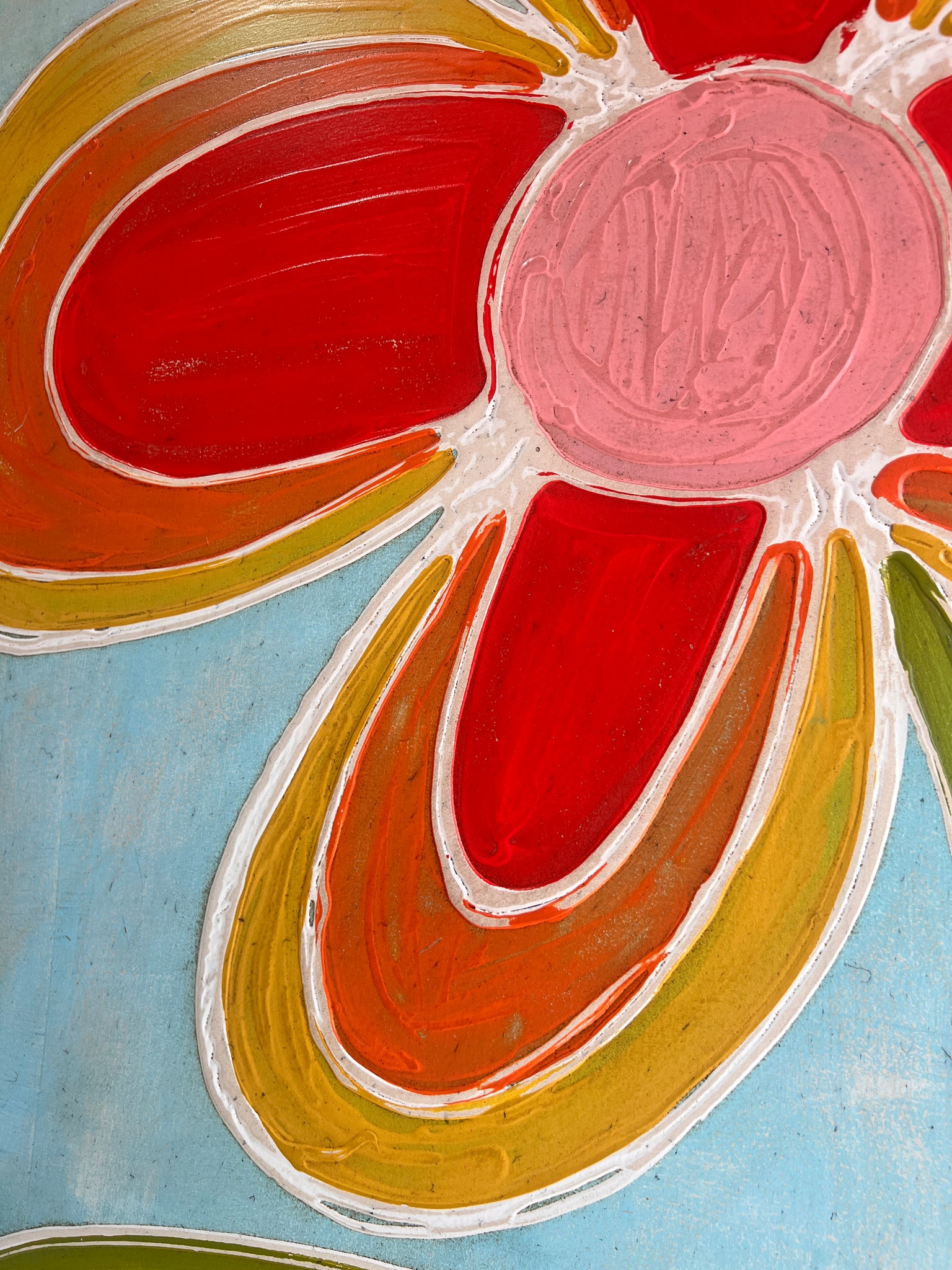 37x37 HAND-PAINTED SIGN on a light blue background. Design is painted on a 1/2 maple plywood, sealed with a clear coat and framed painted red Indiana native poplar.