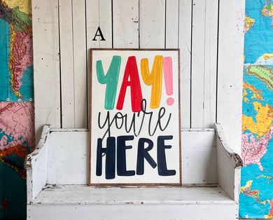25x37 NEW “Yay You’re Here” Hand-Painted Sign
