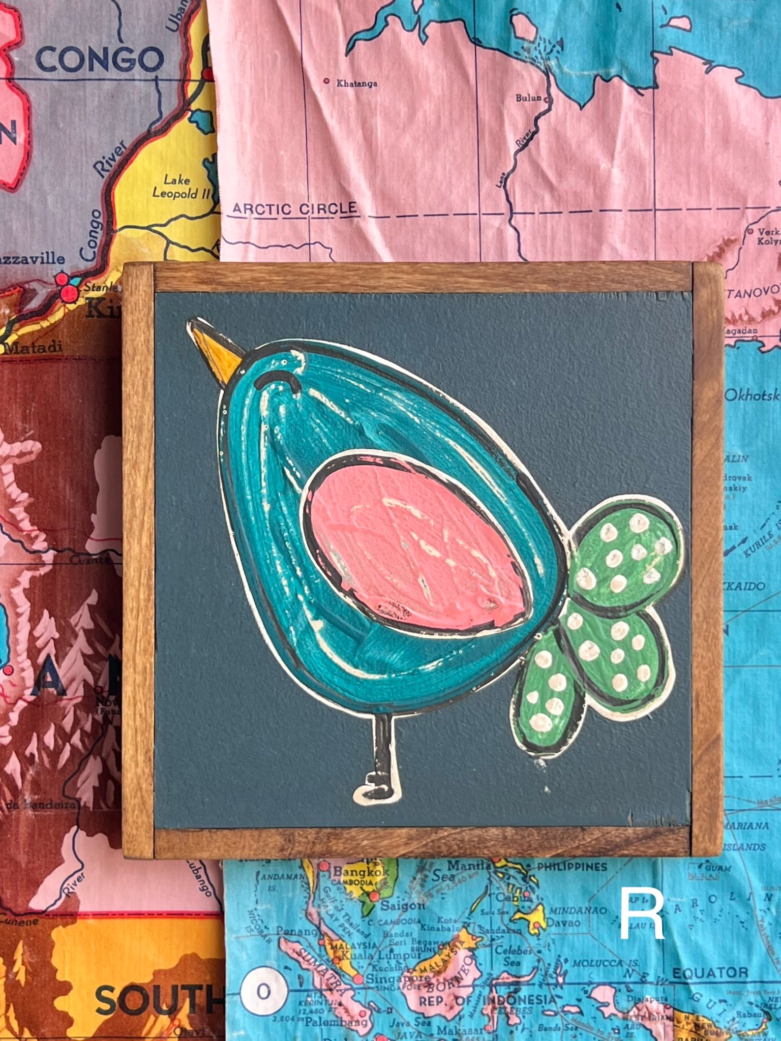 6.5x6.5 Hand-painted sign. Design is painted on a 1/2 maple plywood, stained and sealed with a clear coat and framed with Indiana native poplar.