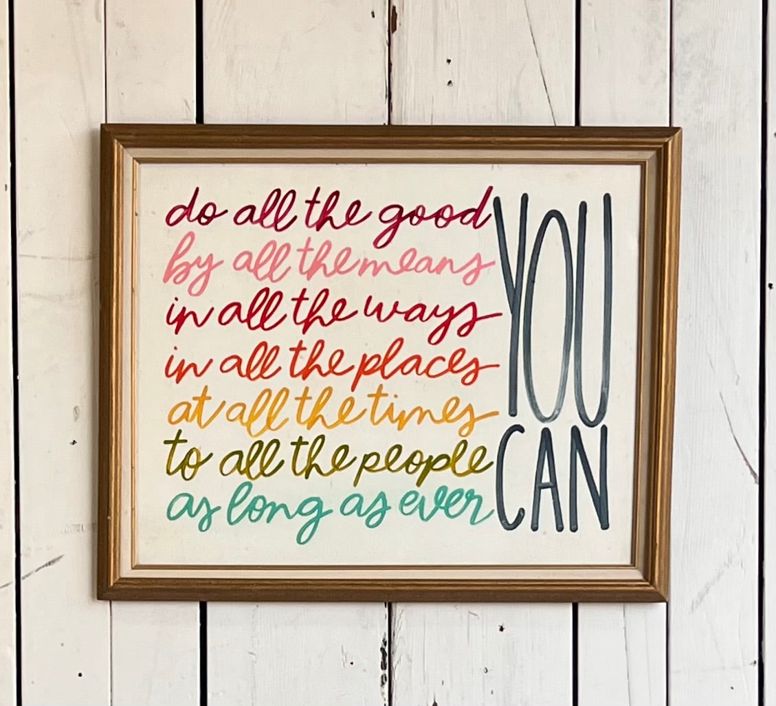 23x19 hand-painted wooden sign. Stained and sealed with a clear coat and framed with a reclaimed frame. .